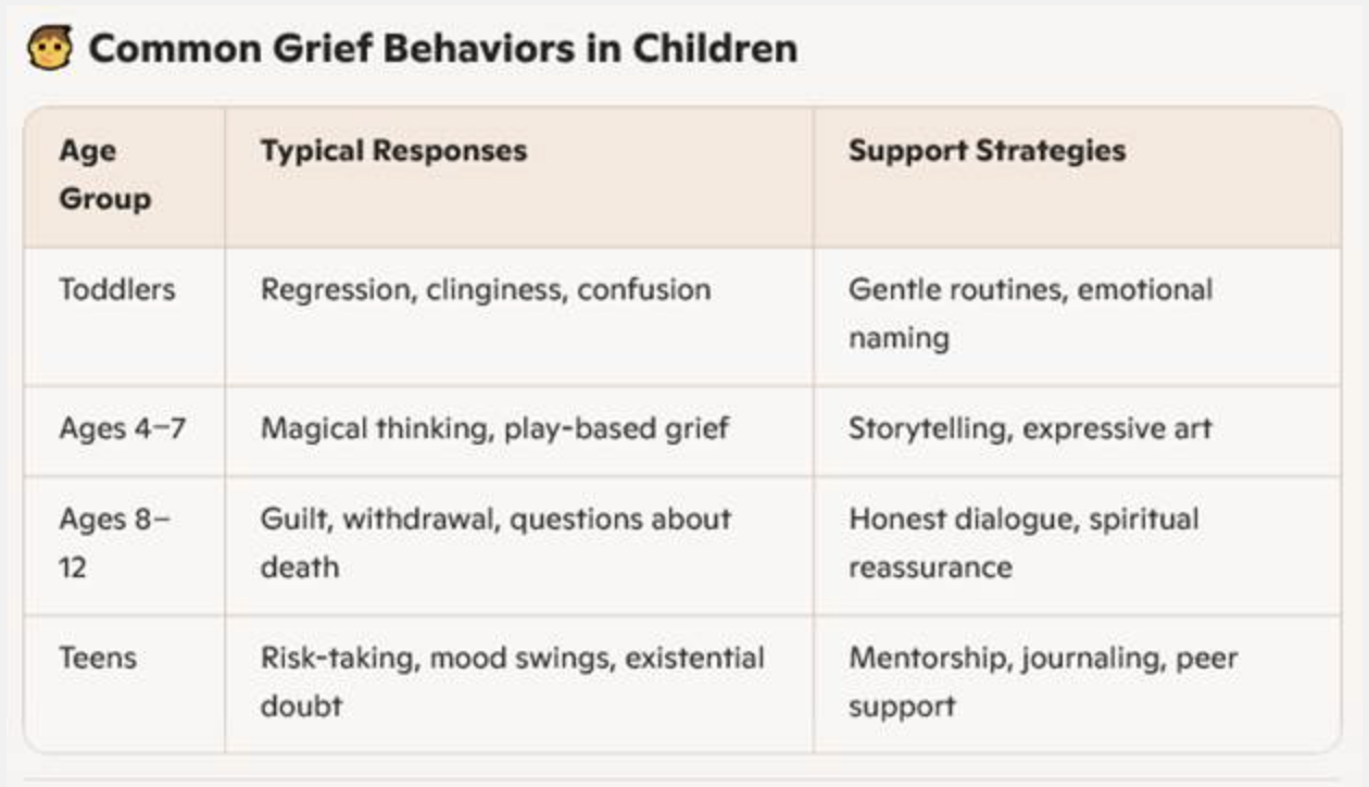 Encourage children to express grief through prayer, music, and scripture-based reflection.